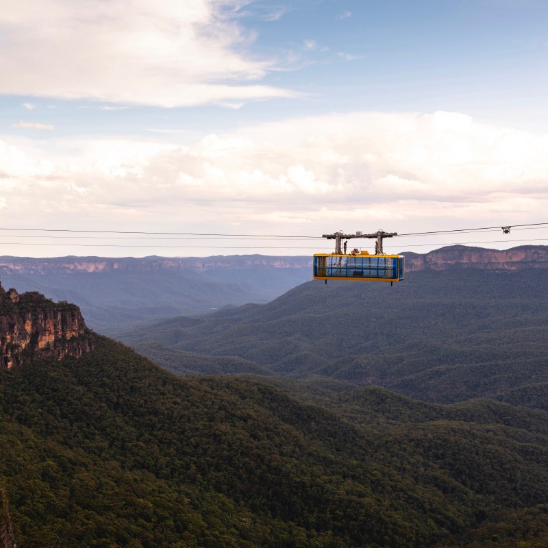 Couple enjoying the Beyond Skyway experience at Scenic World, Katoomba.